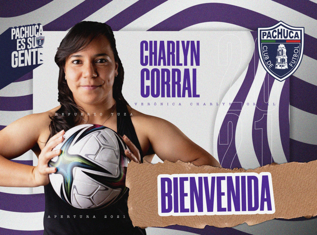Un refuerzo de primer nivel llega a ‘La Cuna del Futbol Mexicano’. Este miércoles 30 de junio el Club de Futbol Pachuca Femenil anunció la la incorporación de la internacional goleadora mexicana Charlyn Corral para apuntalar el plantel de cara al torneo Apertura 2021 de la Liga MX Femenil, proveniente del Atlético de Madrid de la Liga Iberdrola de España.