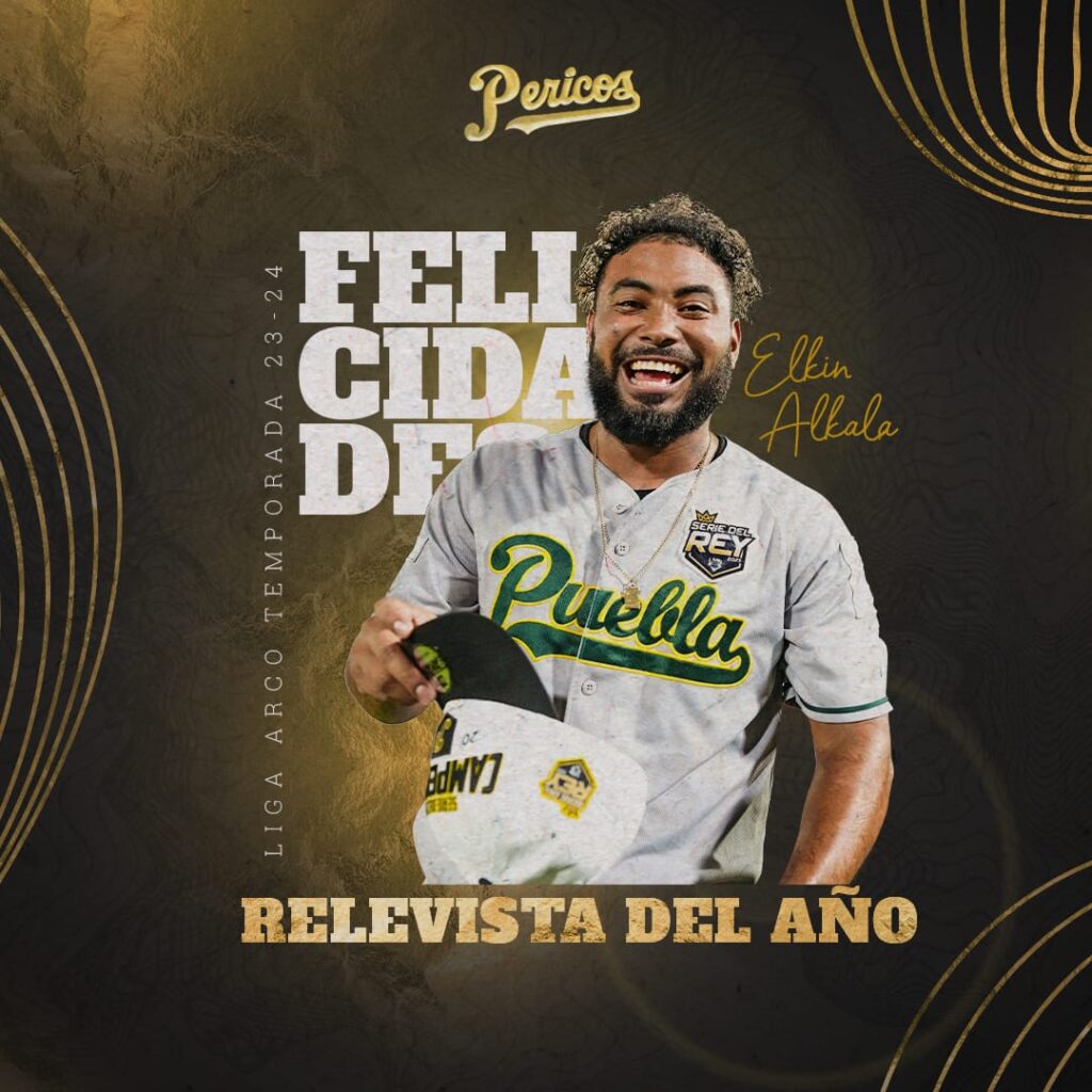 El colombiano Elkin Alcalá, taponero de los campeones Pericos de Puebla, fue nombrado como el relevista del año, tras la gran temporada que realizó este invierno en la Liga Arco con los Venados de Mazatlán.
